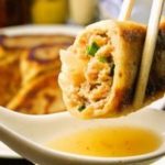 餃子のサイズはふつうの餃子の2~3個分の大きさくらいで、噛むと肉汁が「ギュ~~」っとこぼれるジューシーな感じ。